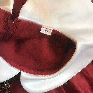 This elegant dressy dress features a beautiful brick-red and white design, w/ gold trim ~ perfect for party wear. The intricate detailing / ruffling adds a touch of sophistication making it a standout choice for a special occasion. This has a beautiful sheen. I did add a petticoat to enhance the skirt (not included). Enlarge to see the amazing detail. This arrived as a gift & was a little small, so we used it for a photo op only.