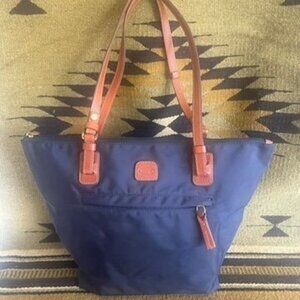 Bric's Milano Medium Navy Blue NylonTote Bag Leather Trim, Removable Pouch