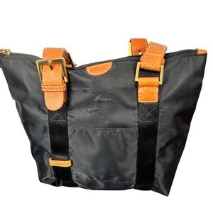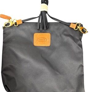 Bric’s Mini Travel Tote with Small Crossbody Black Nylon with Brown straps