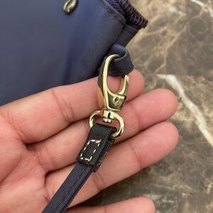 Dark purple snap pouch with strap and blue/camel cosmetic bag/in very good condition,accept offers.
