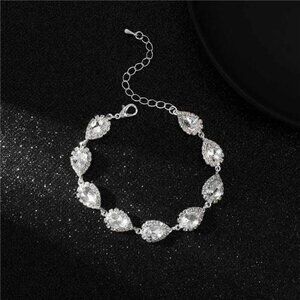 - Elegant jewelry set featuring a necklace, bracelet, and earrings with dazzling teardrop-shaped crystals.