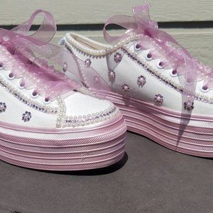 Bridal Fashion Sneakers-Hand Decorated-Size 7-New