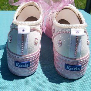 Please no low ballers...know that these shoes alone without hours of time in decorating and also the cost of materials are worth at least $65 undecorated. I have spent a lot of time decorating every detail on these shoes by hand. These are not strips of pearls and rhinestones. They were placed on individually. To low ball is an insult and I will not accept low ball offers. I have drastically reduced the price already. Also the selling fees really knock down a persons profit. Please consider that and also the time and cost put into these shoes when making an offer. Thanks :)