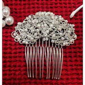 Bridal Hair Accessories Set With Pearl & Crystal Combs and Veil