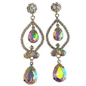 Stunning AB Aurora Borealis Crystal Drop Earrings Rhinestone Dangle Statement Earrings!