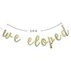 Mug says "Does this ring make me look engaged?", tattoo says "bride" within a ring, and sign says "We Eloped" in gold glitter letters. Tattoo was not used, but the mug and sign were, but are still in perfect condition.