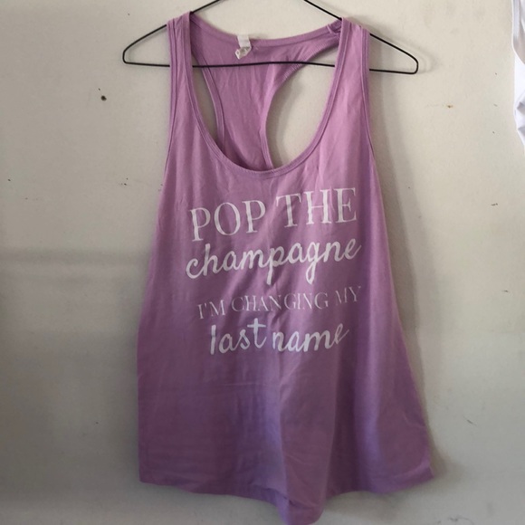 Light racerback with the slogan “pop the champagne I’m changing my last name !”