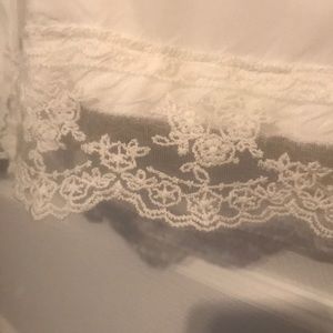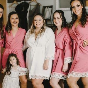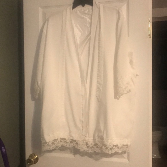 Love this bridal robe. Worn once on my wedding day and has been washed. It is a size large petite, see picture I’m 5’2”. Will fit sizes 14-18. It is line so it is not see through.