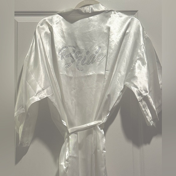 Silk Bridal Robe Rhinestone “Bride” displayed on back of robe Perfect for Bridal party photo shot White/OS
