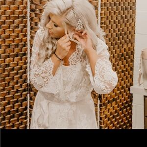 Beautiful custom made bridal robe - worn one time on my wedding. White slip with lace robe and a satin tie. There is a small line of makeup but it should come out when washed.