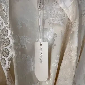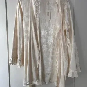 Chic cream robe with floral design. Soft and stylish for relaxation. Only worn once! Tags still on.