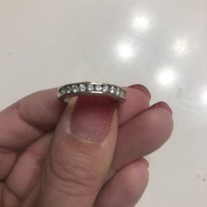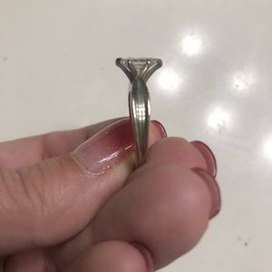 1 carat solitaire engagement ring and 1/2 carat channel set wedding band. White gold. Size 7
