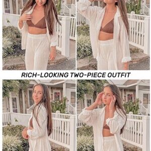 Gorgeous silky, comfortable! Loved wearing this the morning of my wedding, and received many compliments. Great for simple laid back morning, or coordinated group photos for getting ready with your bridal party. The top was a bit long on me so I tied it and that worked well.
