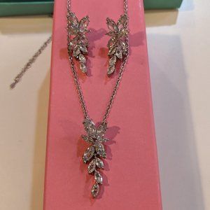 Bridal Set - Drop Earring & Necklace - Silver Tone