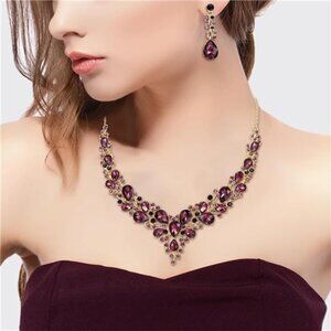 Bridal Wedding Jewelry Set Crystal Teardrop Necklace Dangle Earrings Women Gift