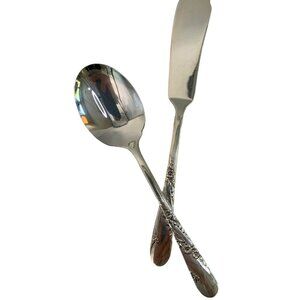Bridal Wreath VTG 50s Oneida Tudor Plate Butter knife Jelly Spoon Set 7593