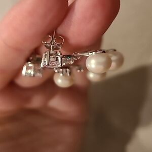 Bridal natural fresh water pearl cubic zirconia sterling silver earrings