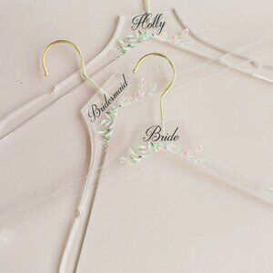 Clear acrylic wedding hanger with "Bride" on it! We offer these modern chic hangers with a boho geometric vibe for the bride, groom, bridesmaids, and the entire wedding party. These hangers are made to order and are a beautiful style, perfect for the many photo ops of the bridal party getting ready! These are durable and make for a wonderful keepsake.