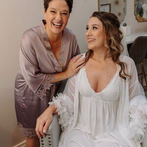 This getting ready robe was $30 on Amazon. I wore this once on my wedding day to get ready. It looks super cute, better than the other silk robes IMO! It's a size small but would honestly fit both S and M girlies. The slip underneath is not for sale, but you can easily find similar on amazon (the one i have on was only $8) :)