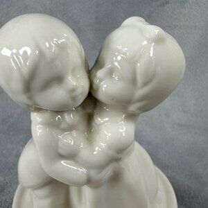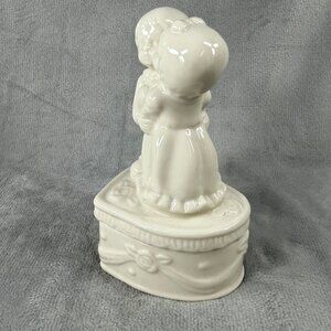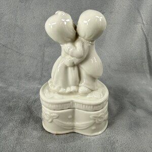 Bride Groom Boy Girl Couple Kissing Trinket Box White Heart Design Base. Unbranded.