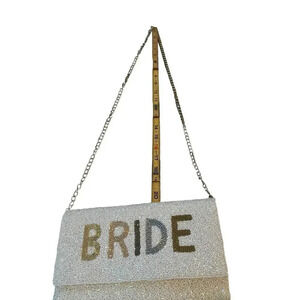 Bride Metallic Beaded Lettered Gold Chain Strap Seed Beaded Clutch Purse
