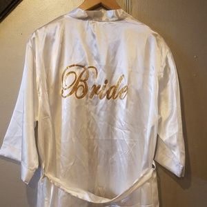Satin Robe with Gold embroidered "Bride". New, never worn.