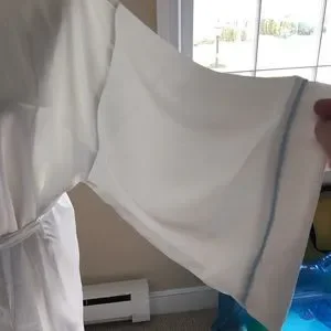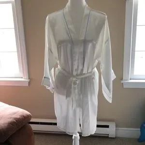 Satin white robe with light blue piping