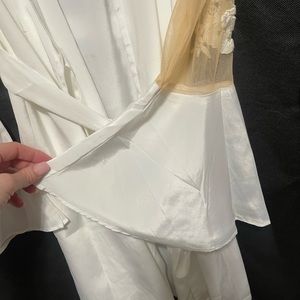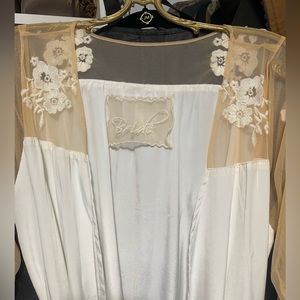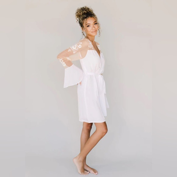 Robed With Love's most beloved bridal robe featuring floral embroidered illusion sleeves with a romantic bell cuff.