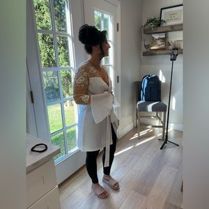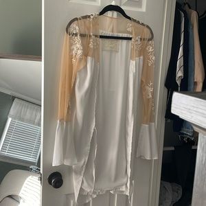 “Robed With Love” White Bridal Robe with mesh sleeves. Size Small. Worn once.