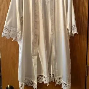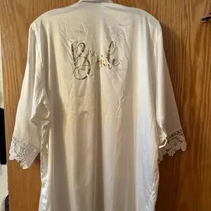 Bride Robe with gold lettering. Strap/tie not included and it does have loops to put one through.