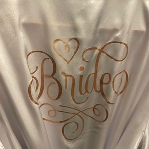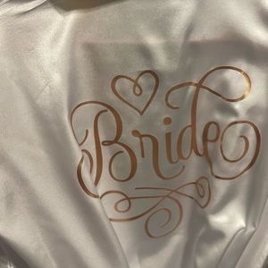 Bride robes are personalized on the back with the word Bride in rose gold. Make a bundle of $35 or more to enjoy free shipping.