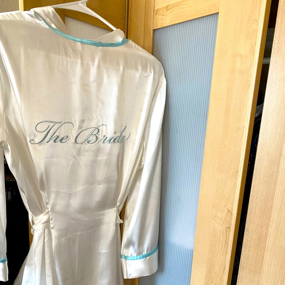 Small/medium size white satin robe. Brand Linea Dontenella purchased at Macy’s Only worn for pictures day of wedding