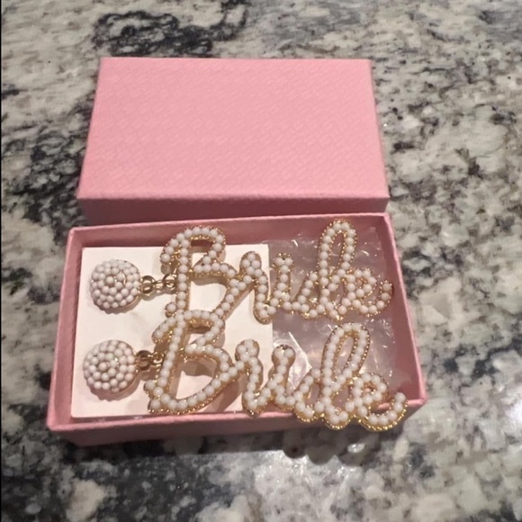 Add some sparkle to your big day with these stunning “Bride” statement earrings!
