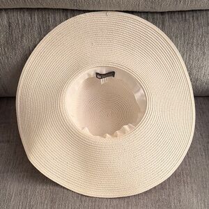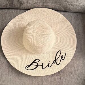 Stylish sun hat with 'Bride' text. Perfect for weddings and beach days.