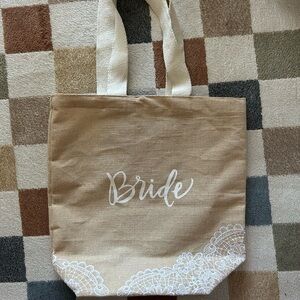 Stylish tan tote bag with 'Bride' print, perfect for weddings and special occasions. Only used once wedding day to carry all my personal belongings!