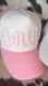 Stylish bride trucker hats featuring 'bride' in pink script. Perfect for bridal parties.