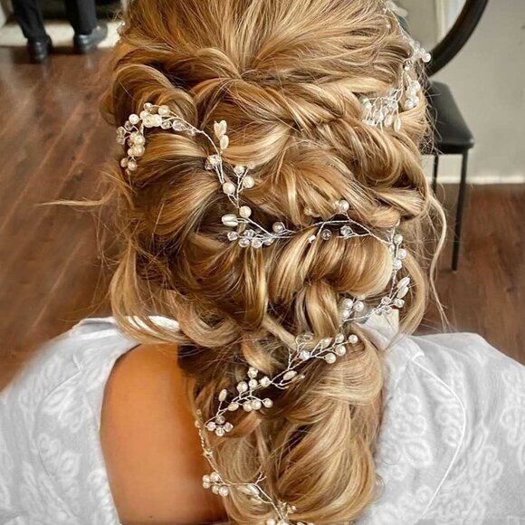 Bride Wedding Hair Vine Silver Pearl Long Headpieces Crystal Headpiece Rhineston