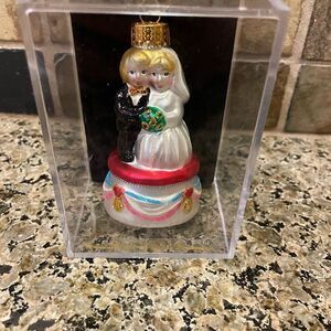 Two blonde figures! Hand painted glass in original box ornament! Bought years ago to put on a wedding gift but it ended up in my Christmas stuff! Excellent condition clean home.