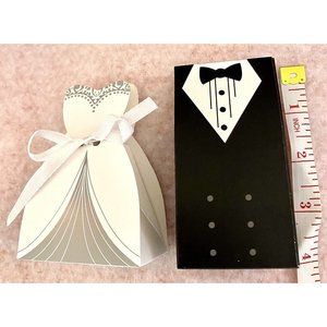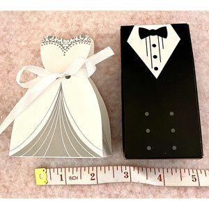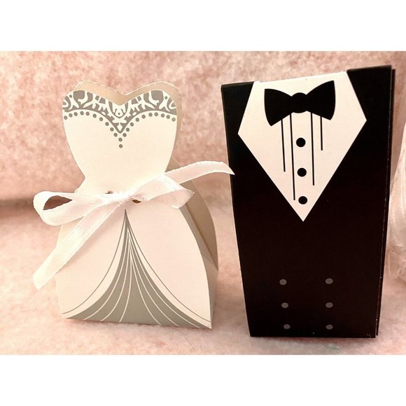 Bride and Groom Wedding Favor Gift Boxes 100 Count Per Pack 4”x2.5” Assembly Required - one of each was taken out to assemble for photos, 3 packs of 100 each are available. Pricing is for one pack of 100