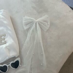 1 white hair bow (clip)