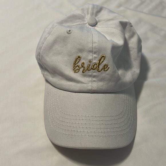 White baseball hat with “ bride “ sparkle gold writing . Adjustable. Worn once