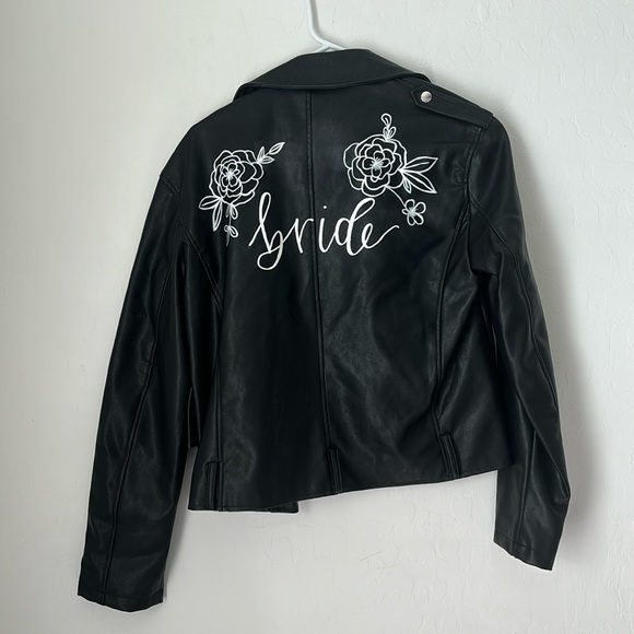 Faux leather jacket with painted “bride” on back
