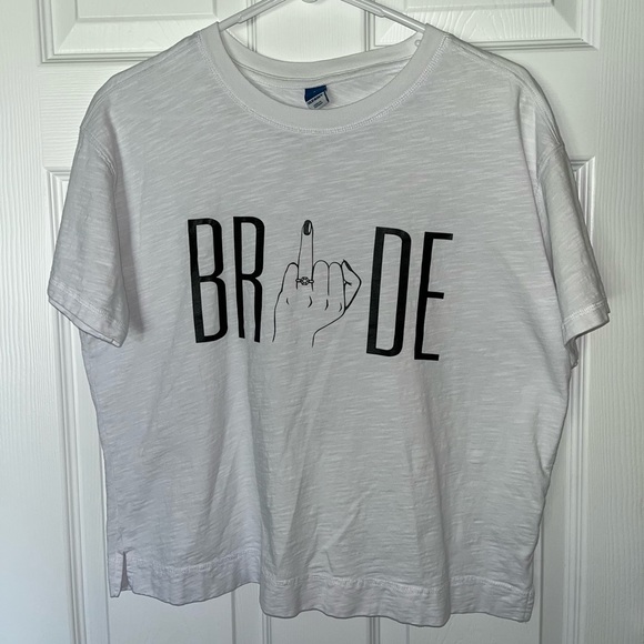 Tshirt is from old navy (vintage style). I did hear pressed the Bride design on. Worn once on my bachelorette trip.