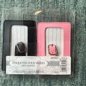 Bride & Groom Wedding Luggage Tags Pink & Black NWT