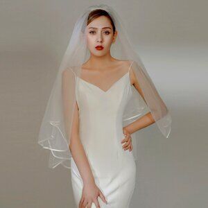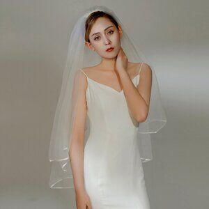 Bridella BV97 Short Double Layer Satin Edge Bridal Simple Wedding Veil