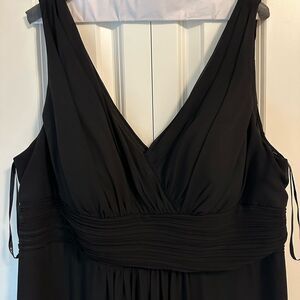 This is wedding/bridesmaid dress sizing. Size 22 - Tailored for 5’7 height with Low heels. Worn once. Floor length dress Black. Dry cleaned.