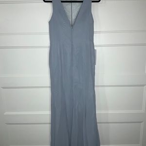 Never been worn, still has dress bag and tag attached. Custom ordered AZAZIE bridesmaid dress, dusty blue color, deep v neck with dusty blue sheer mesh, sleeveless style.