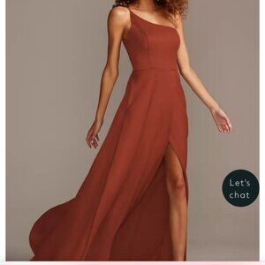 Crepe-back satin bridesmaid dress with a one-shoulder neckline, side pockets, and back zipper!