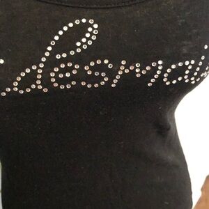 Worn twice & washed. Rhinestones are all in tact. Minor washwear that you cab only see up close- pictures are zoomed in for reference.