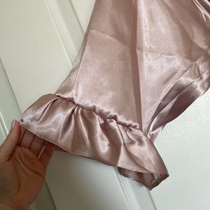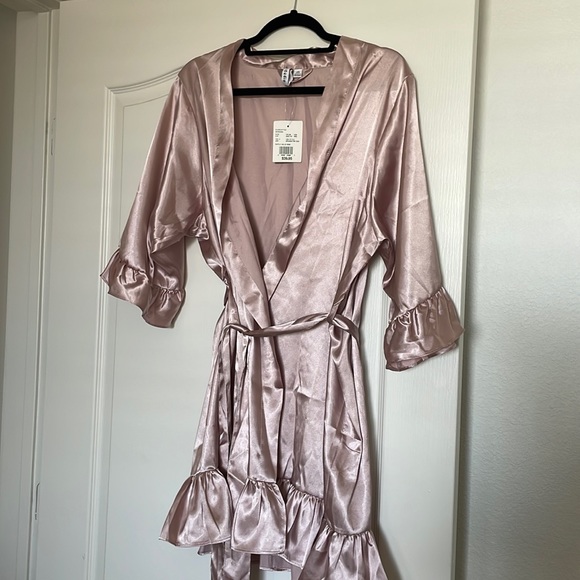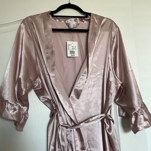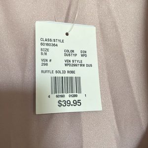 Cute David’s Bridal bridesmaid robe. Can be used for any occasion or just at home. Dusty pink color with ruffles. Size fit’s like a medium.